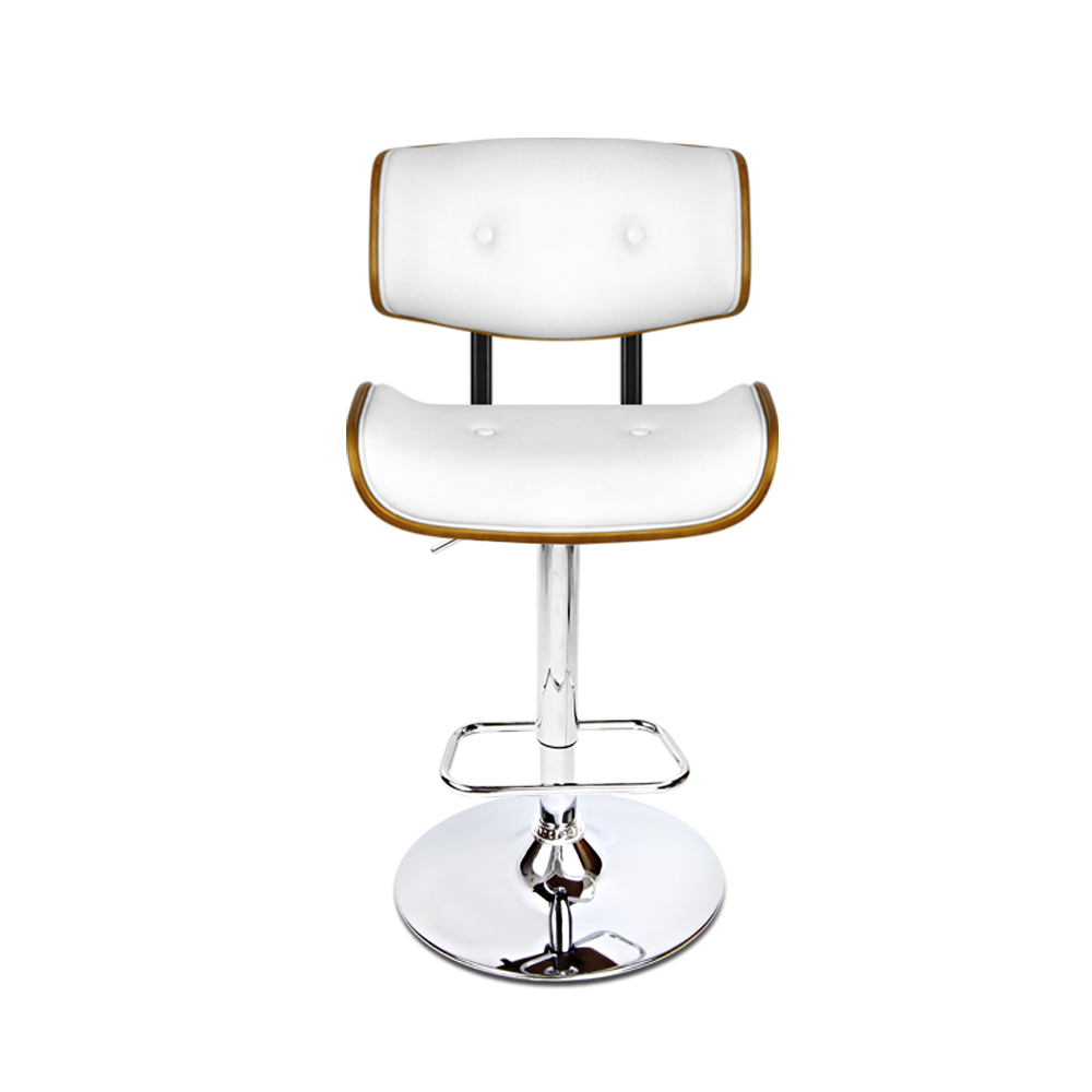 This set of two bar stools combines modern design with functional comfort, making them suitable for various environments. Featuring a sleek wooden seat and a chrome gas lift lever, these stools add a touch of elegance to your space. The sturdy chrome base and padded leather seats ensure durability and comfort, while the adjustable height and swivel function provide convenience for users.