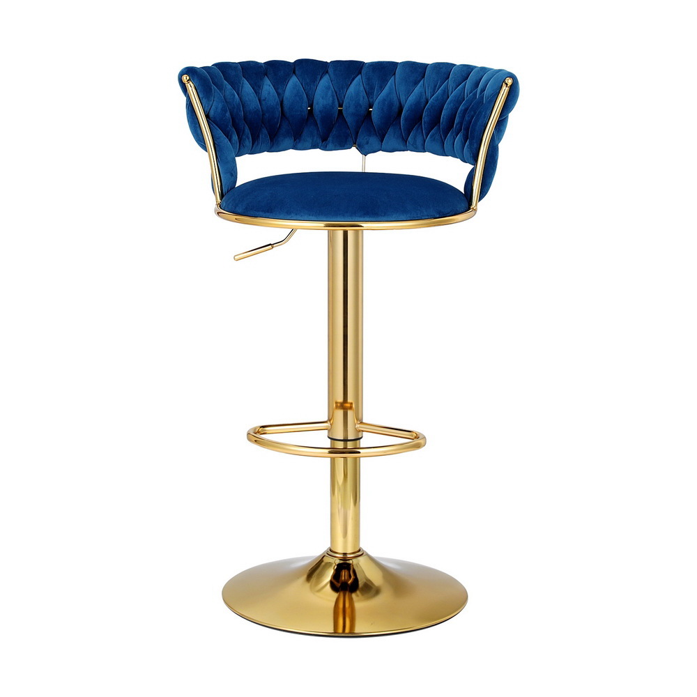 Artiss 2x Bar Stools Gas Lift Velvet Woven Backrest Navy
