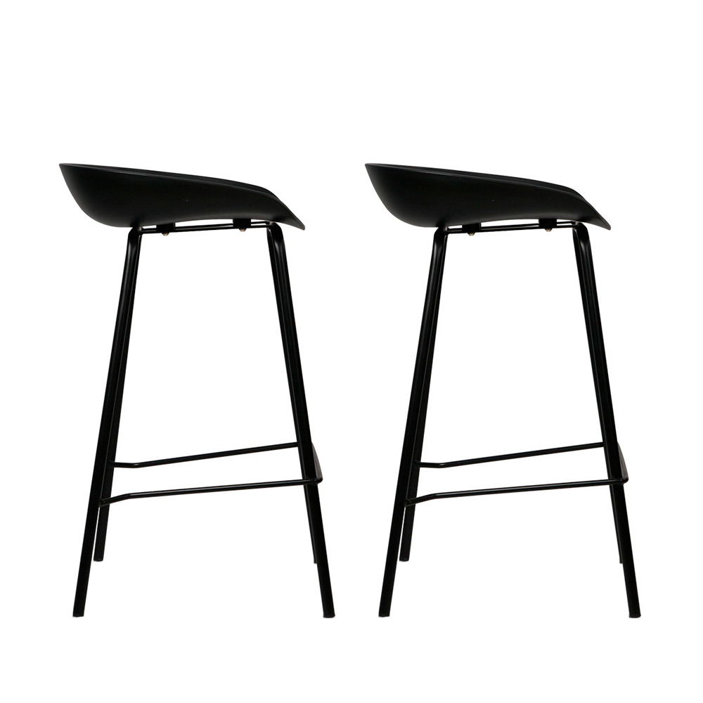 This set includes two sleek and stylish bar stools designed for kitchen counters or bars. They feature a minimalist design with a comfortable seat and protective floor pads to prevent scratches. The stools are built for durability and stability, making them a practical addition to any space.
