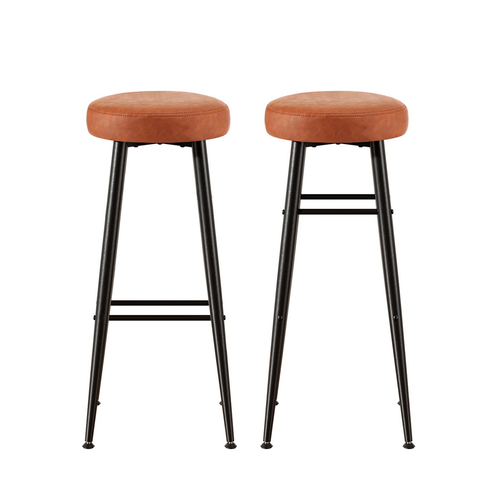 Artiss 2x Bar Stools Kitchen Dining Chairs Counter Round PU Leather Lane Brown