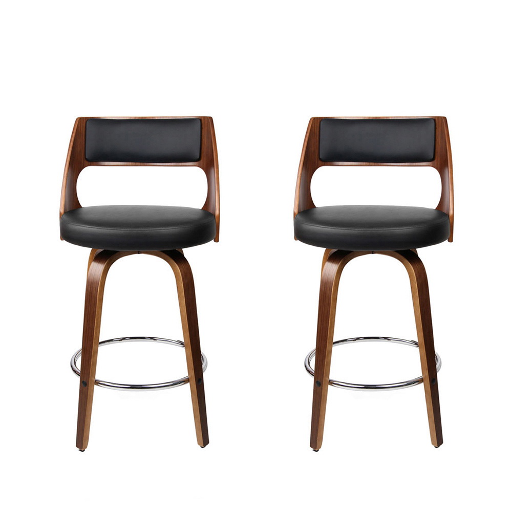 This set includes two stylish swivel bar stools designed with a combination of wood, metal, and PU leather for a modern look. The stools feature a comfortable padded seat and a supportive backrest, making them suitable for various settings. Their sturdy construction and thoughtful design ensure durability and ease of use.