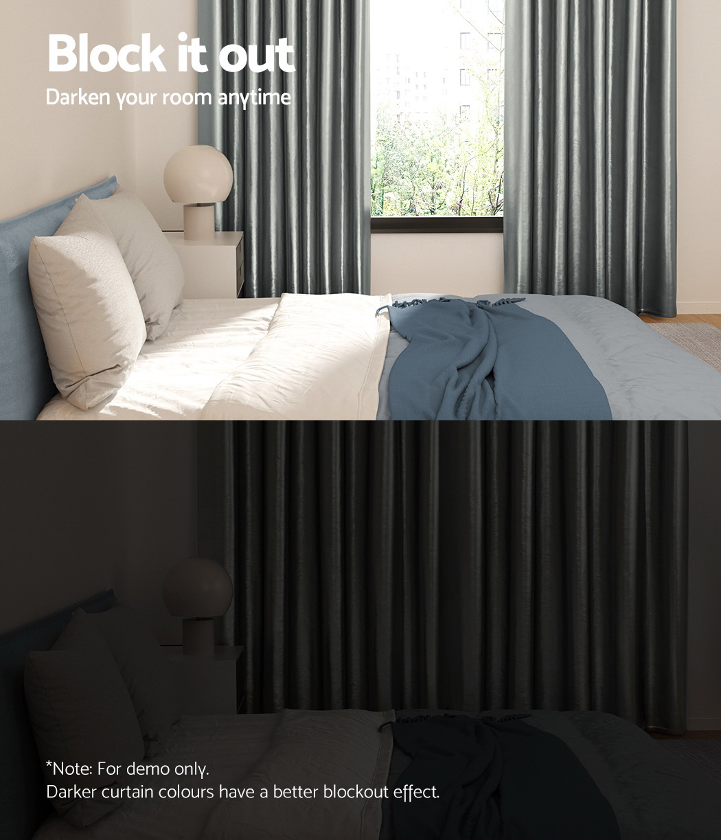 Artiss 2X Blockout Curtains Eyelet 240x230cm Grey Shine
