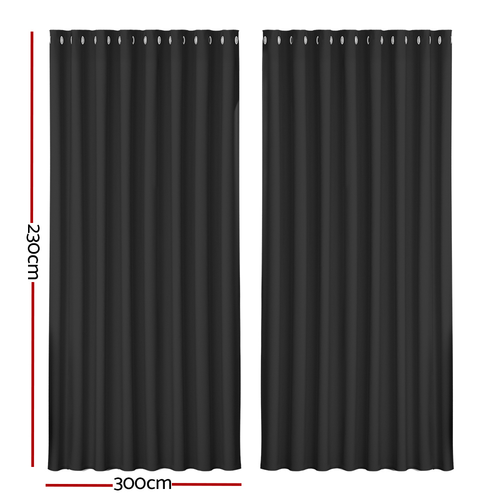 Artiss 2X Blockout Curtains Eyelet 300x230cm Black