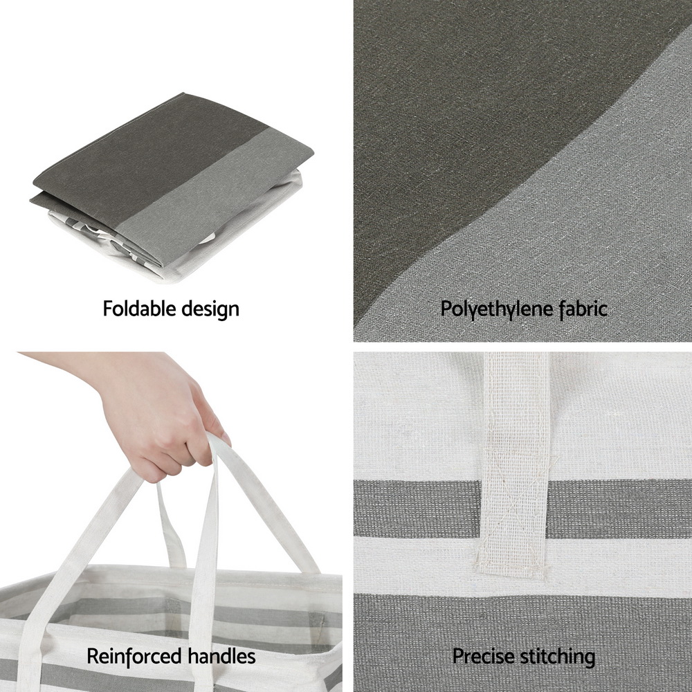 Artiss 2X Laundry Basket Hamper Foldable White Grey