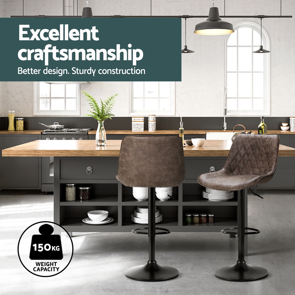 Artiss 4x Bar Stools Gas Lift Vintage Leather Brown