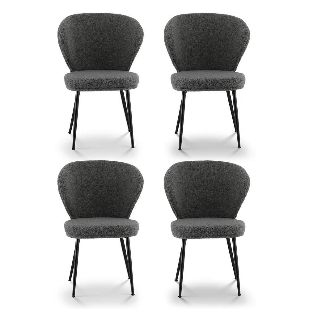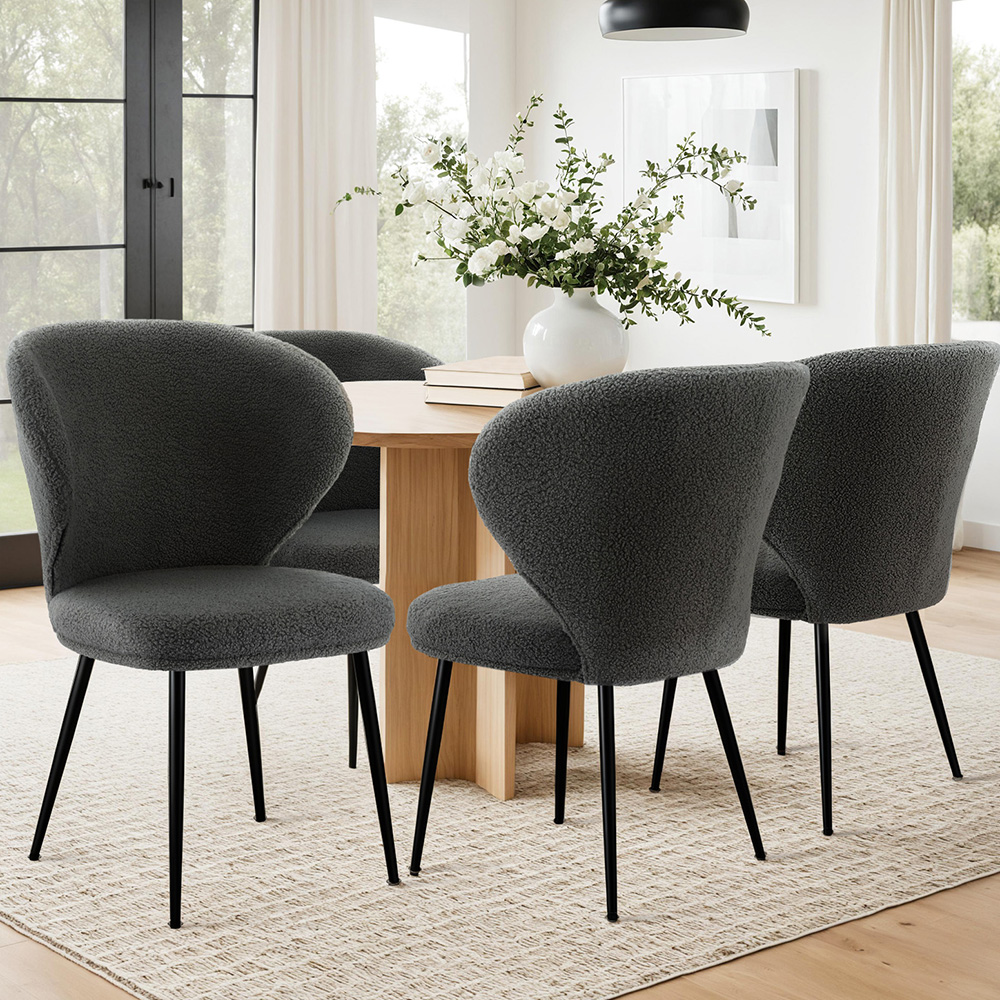 Artiss 4x Dining Chairs Sherpa Boucle Wing Back Grey