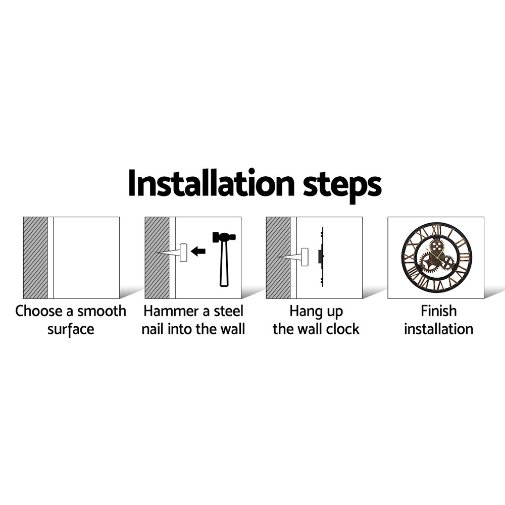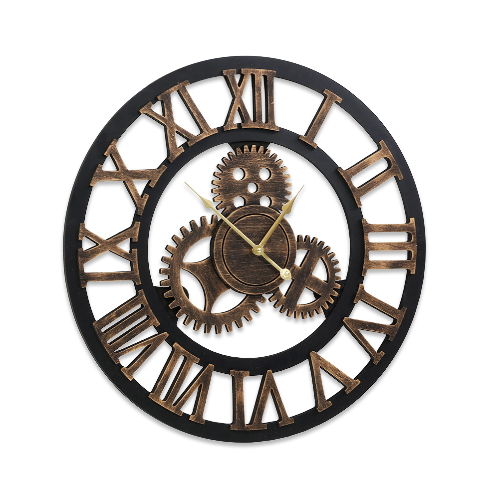 This large retro-style wall clock adds a timeless and sophisticated touch to any space. Featuring a steampunk design with prominent cogwheels and a rustic finish, it combines aesthetic appeal with functionality. The clock is easy to read with large 3D Roman numerals and is suitable for various rooms including living rooms, bedrooms, and offices.