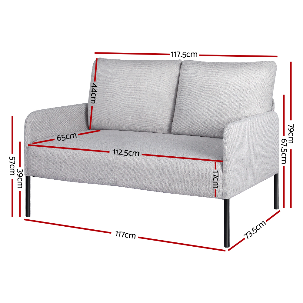 This 2-seater sofa combines modern design with comfortable seating, making it a stylish addition to any living space. Crafted with a sturdy metal frame and upholstered in soft linen fabric, it offers durability and a cozy feel. Its sleek appearance complements contemporary interiors, providing both functionality and aesthetic appeal.