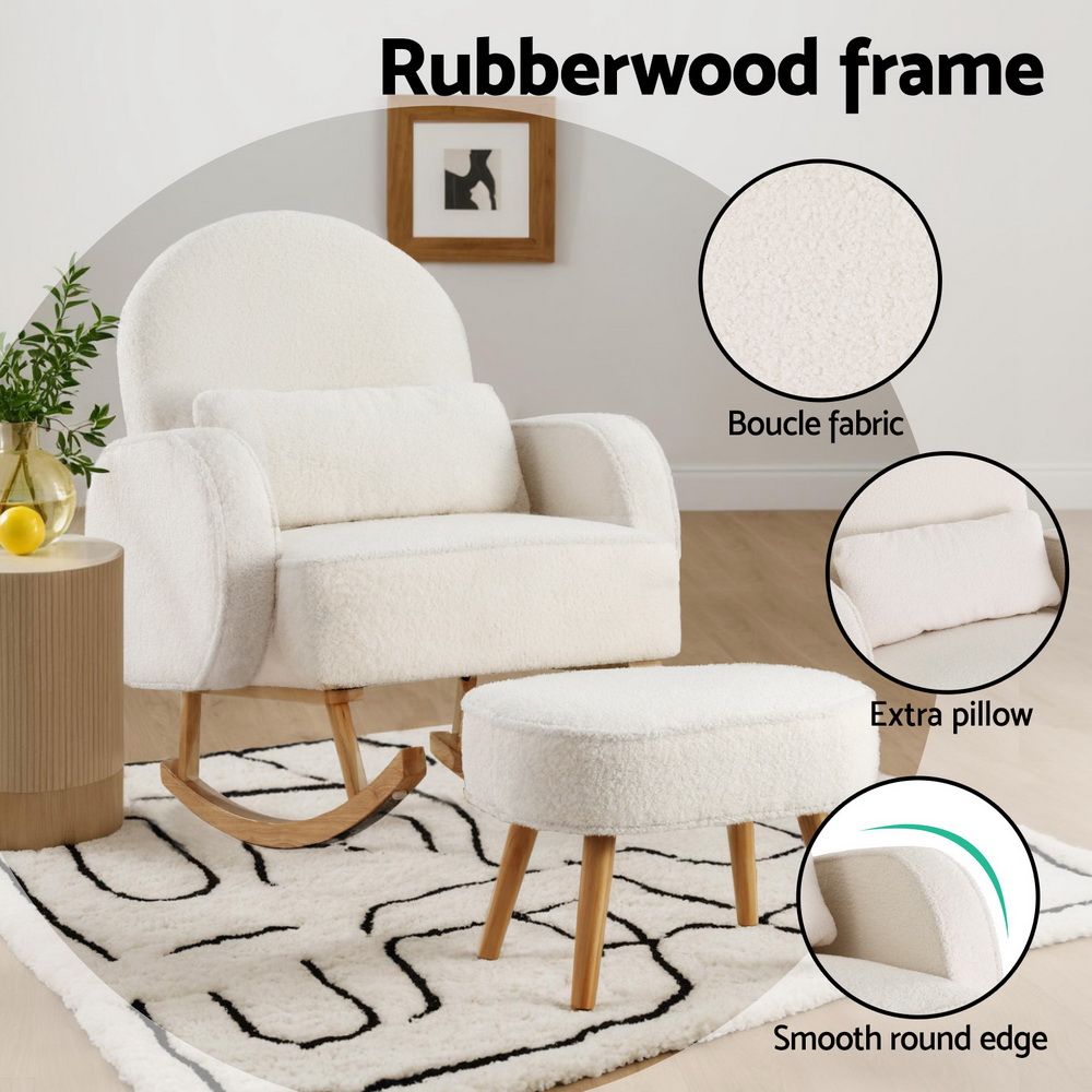 Artiss Armchair Rocking Chair Ottoman Lounge Footrest Round Nursing Boucle White