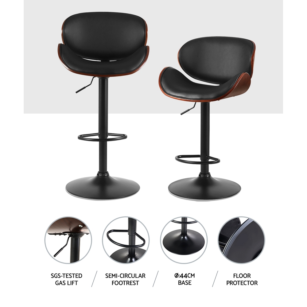 Artiss Bar Stools Kitchen Leather Barstools Swivel Gas Lift Chairs Black x2