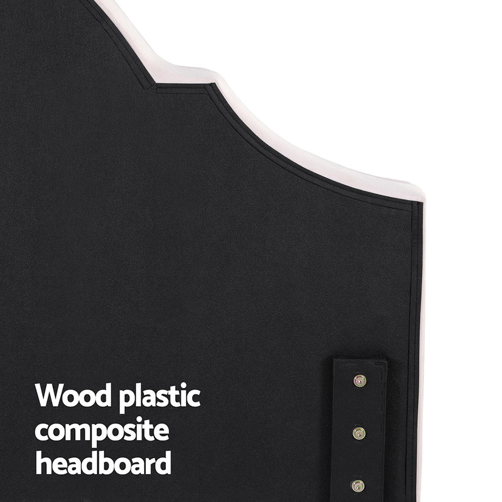 This elegant bed head features a plush velvet fabric with a scalloped design, providing a stylish and comfortable addition to your bedroom. The headboard is constructed from a durable wood-plastic composite, supported by pine wood legs wrapped in non-woven fabric. Designed for easy maintenance, it requires full assembly upon delivery.