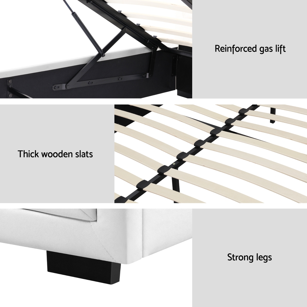 Artiss Bed Frame Queen Size Gas Lift White TIYO