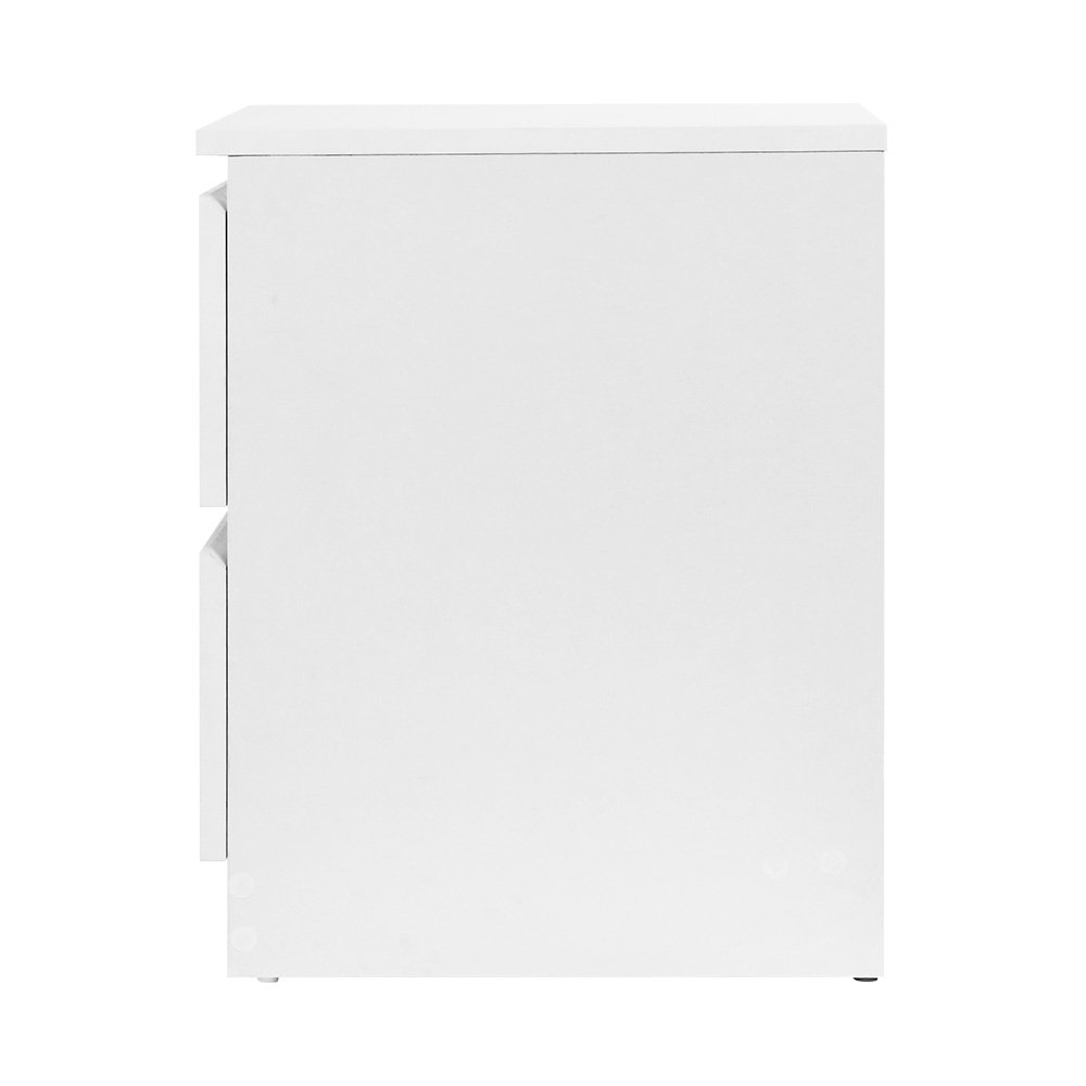 This bedside table features a sleek and minimalist design, making it a practical and stylish addition to any bedroom. Constructed from durable particle board, it offers reliable stability and longevity. The table includes two spacious drawers with smooth anti-rust runners, providing ample storage. Its handle-less design enhances its modern aesthetic, while the easy-to-clean finish ensures maintenance is simple.