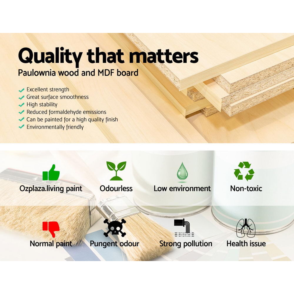 • 18mm thick wood and MDF construction for durability