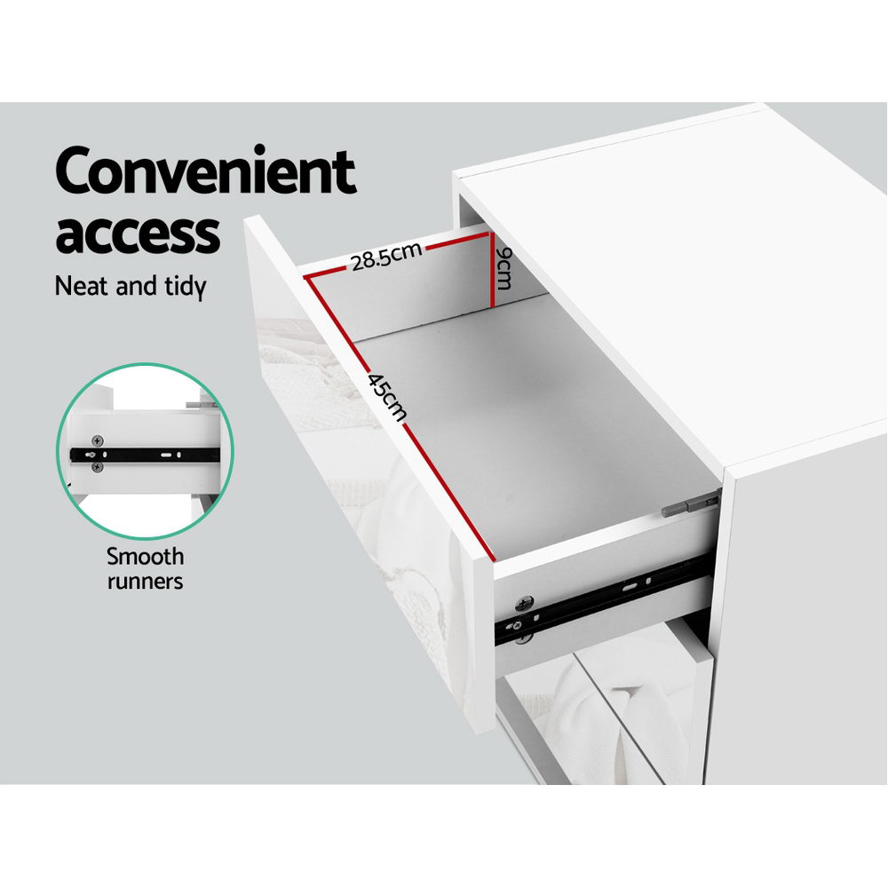 Artiss Bedside Table LED 3 Drawers – MORI White