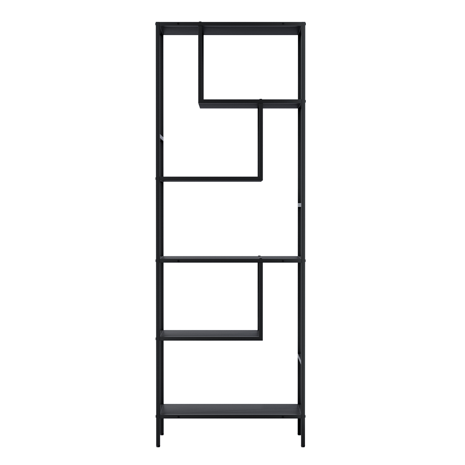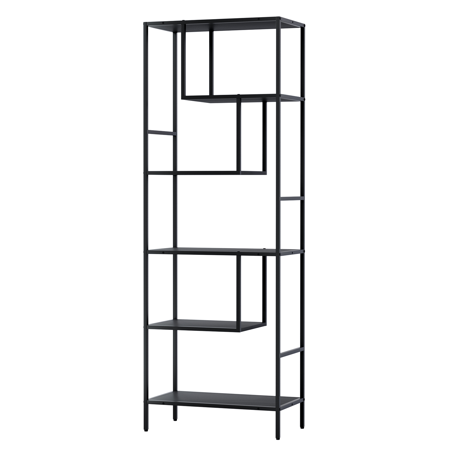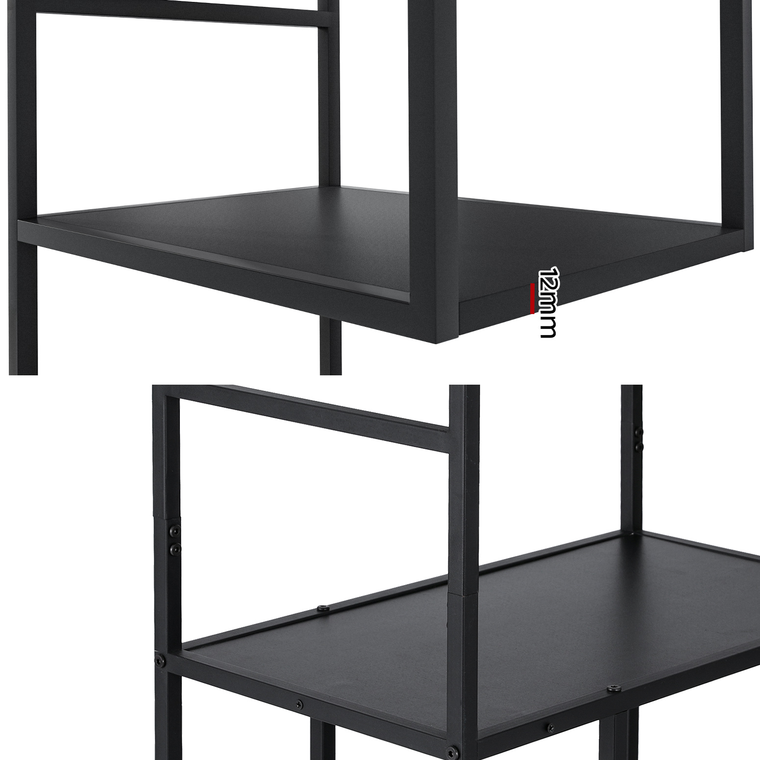 This display shelf features a versatile five-tier design suitable for showcasing books, artwork, souvenirs, and other decorative items. Constructed with a durable powder-coated metal frame and 12mm thick shelves, it combines strength with a simple, industrial-inspired aesthetic. The shelf includes safety features such as anti-tip hardware and floor protectors, making it suitable for various interior styles in modern homes. Easy to assemble and maintain, it is an ideal addition to enhance your living space.