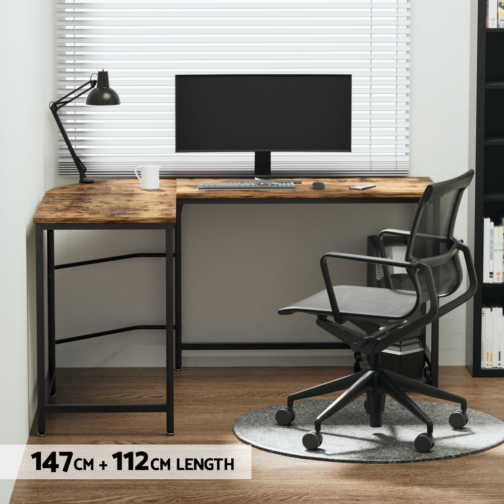 Artiss Computer Desk L-Shape CPU Stand Brown 147CM