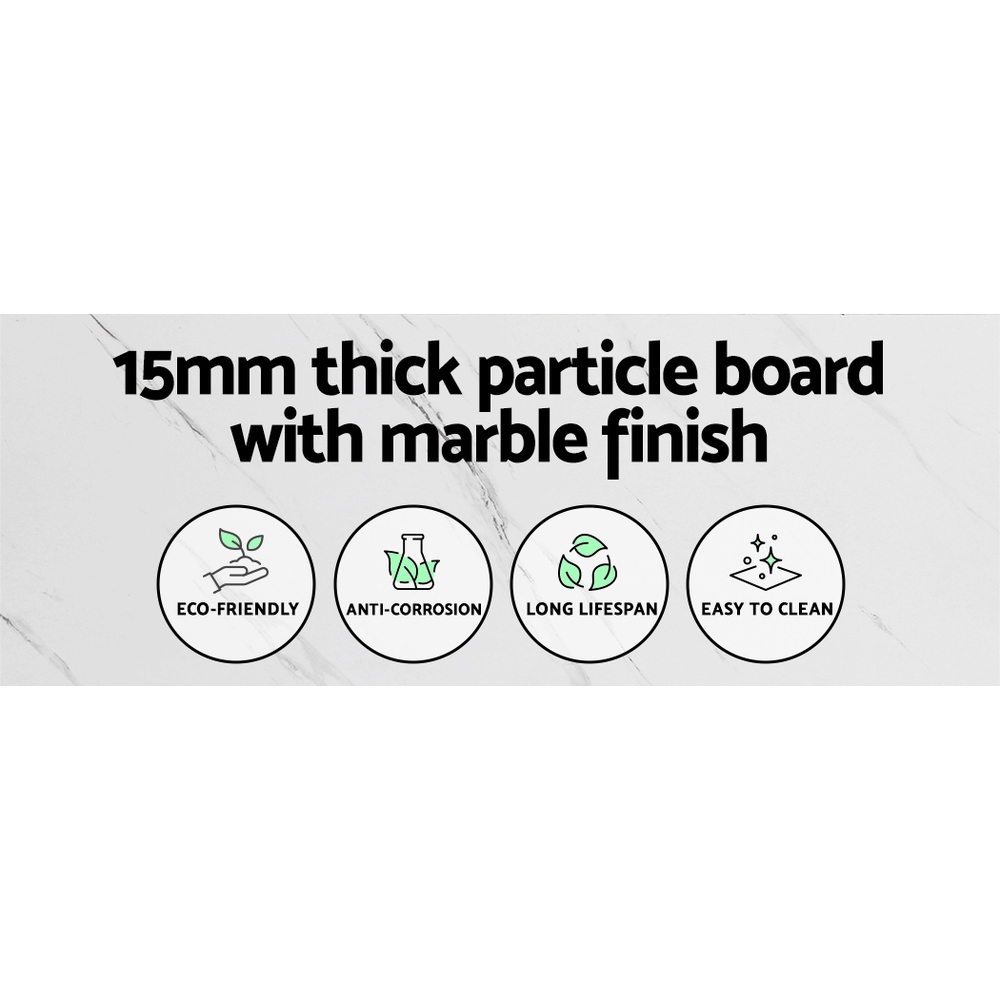 The console table combines stylish design with practical functionality, making it an ideal addition to any space. Its sleek lines and smooth edges contribute to a minimalist aesthetic while providing a sturdy and durable surface. The table features a marble-effect tabletop supported by a solid metal frame, ensuring long-lasting use and resistance to corrosion. Designed with anti-slip feet, it protects floors from scratches and offers excellent stability with its T-shape base. The space-saving and easy-to-clean design makes it suitable for various settings, adding elegance and practicality to your home or office.