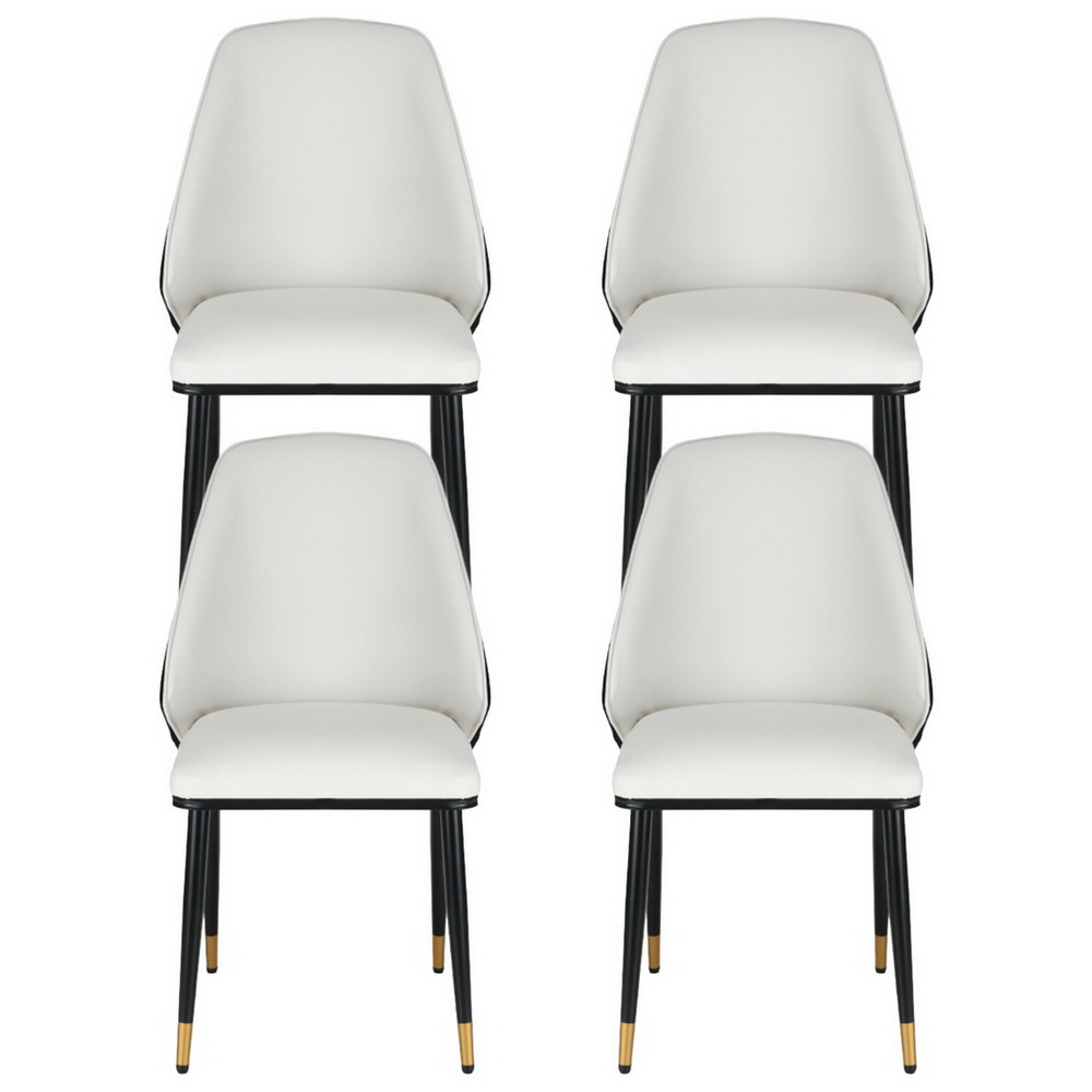 This set includes four stylish dining chairs designed to enhance any dining area or other living spaces. Crafted with a focus on comfort and durability, these chairs feature a sturdy solid wood frame and steel legs with anti-slip pads. The plush PU leather seats and contoured backrests provide excellent support, making them suitable for extended use. Their modern design adds a sophisticated touch to your home decor.