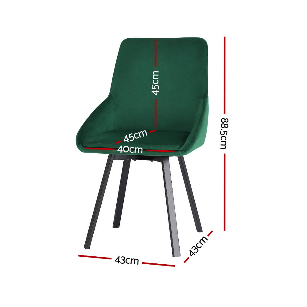 Artiss Dining Chairs Set of 4 Velvet Swivel Base Green
