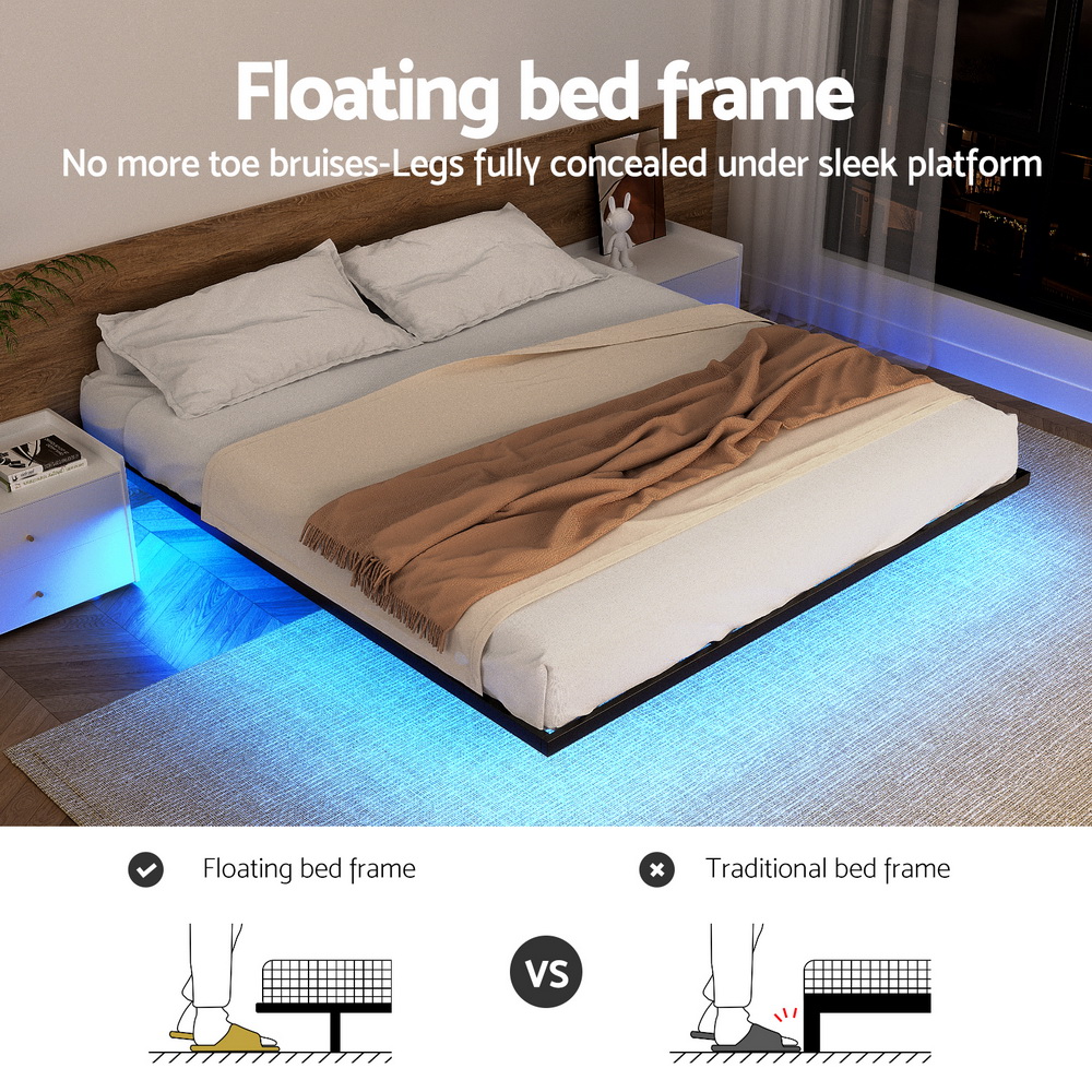 Artiss Queen Bed Frame,Floating Metal Bed Frame with Smart LED Lights – Sturdy Metal Platform Bed Base, Silent Design, Tool-Free Assembly, 300KG Capacity for Home/Hotel/Master Bedroom?