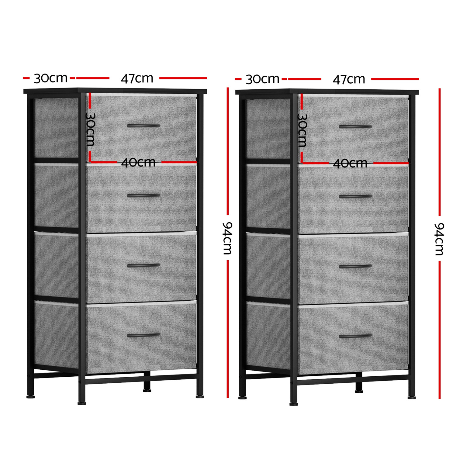 Artiss Set of 2 Chest of 4 Drawers Storage Dresser Tallboy Grey