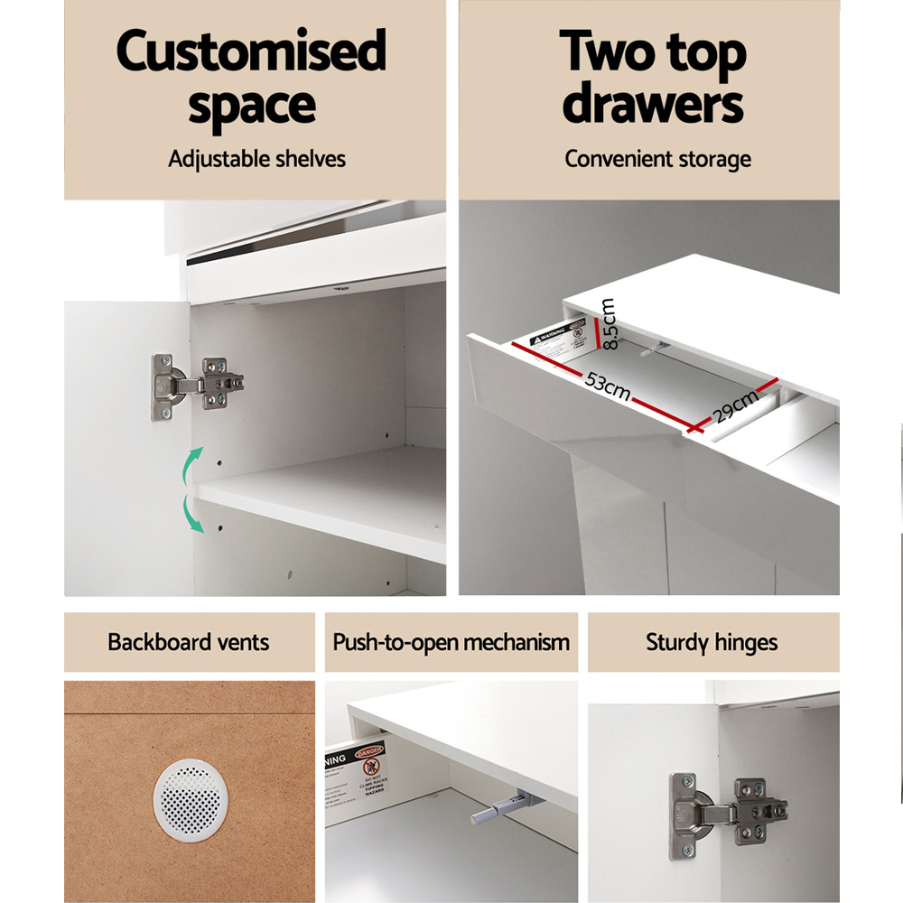 - Finish: UV high gloss on the front, melamine on the frame