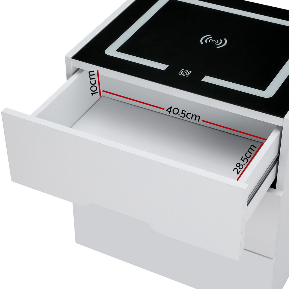 Artiss Smart Bedside Table 3 Drawers with Wireless Charging Ports LED White ADAD