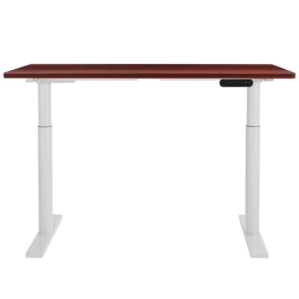 This electric standing desk features a motorised height-adjustable frame that allows users to switch between sitting and standing positions easily. It is designed to promote better posture and reduce health issues associated with sedentary lifestyles. The desk combines a sturdy metal frame with a stylish desktop, providing a functional and aesthetic workspace.
