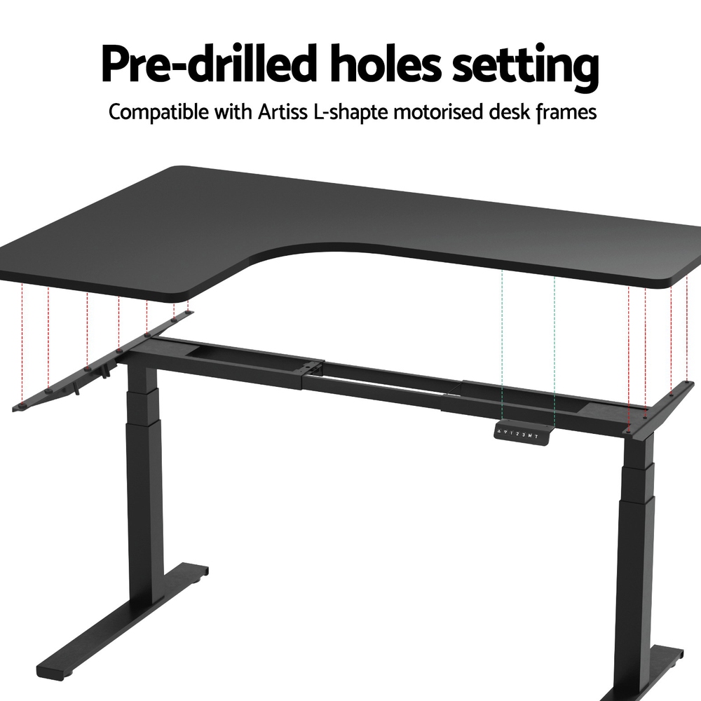 This is a motorised L-shape desk top designed to enhance your workspace with a sleek and functional surface. It features a glossy finish, pre-drilled holes for easy setup, and smooth edges for safety and comfort. Compatible with motorised desk frames, it provides a stylish and practical solution for your office or home workspace.