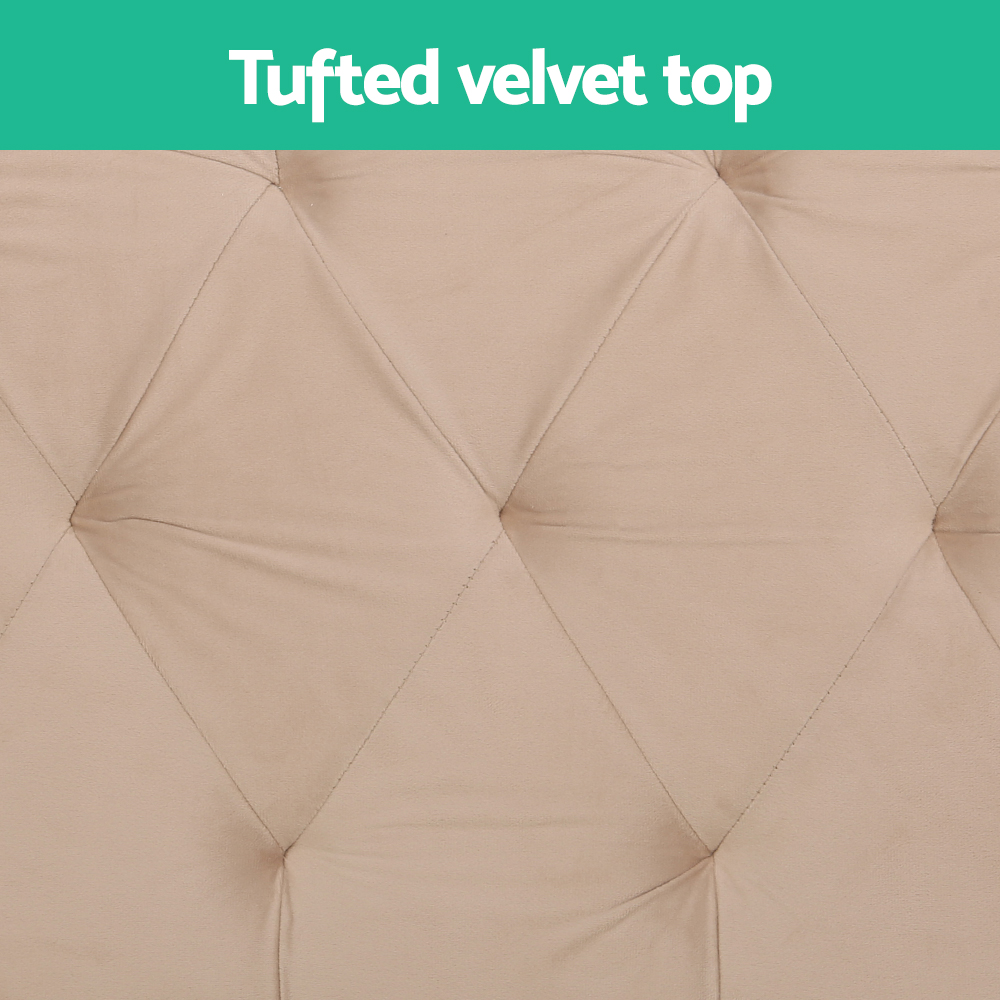 This storage ottoman combines style and functionality, providing a versatile solution for your living space. Made from a solid wood frame with woven panels, it features a tufted velvet top filled with high-resilience foam for comfort and durability. The lid is detachable, revealing a spacious storage compartment suitable for clothes, toys, pillows, blankets, and more. Supported by sturdy metal legs, the bench offers stability and can support significant weight, making it a practical addition to various home decor styles.