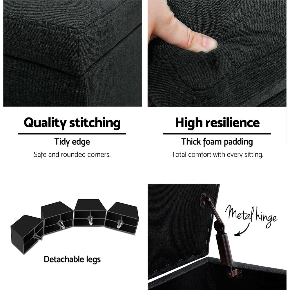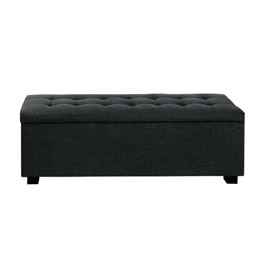 Artiss Storage Ottoman Blanket Box 97cm Linen Charcoal
