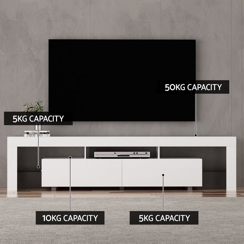 Artiss TV Cabinet Entertainment Unit Stand RGB LED Gloss Furniture 200cm White