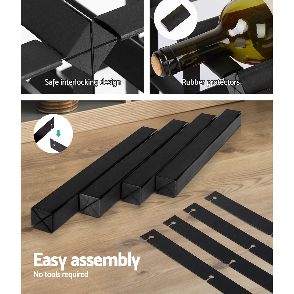 This wine rack provides an elegant and practical solution for storing and displaying up to 72 bottles of wine. Constructed from durable pine wood and heavy-duty steel, it offers a sturdy and long-lasting structure. Its design is suitable for use in kitchens, cellars, restaurants, or bars, making it a versatile addition to any space. The rack features a safe interlocking assembly and includes rubber protectors to prevent damage to bottle necks. Easy to assemble, it allows for quick setup and an attractive presentation of your wine collection.