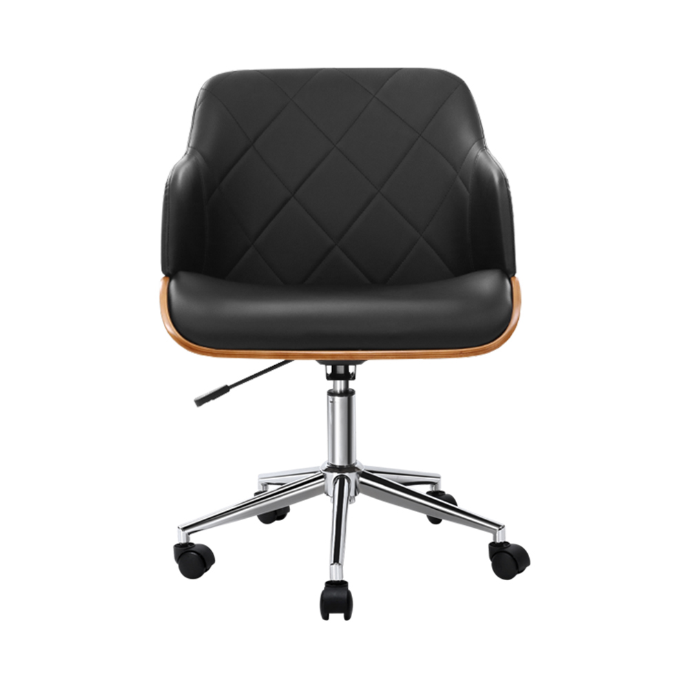 This office chair combines a stylish wooden frame with cushioned support and premium upholstery, providing a comfortable and contemporary seating option for your workspace or home office. It features adjustable height, 360-degree rotation, and smooth castor wheels for easy mobility and customization. The durable construction ensures long-lasting use, making it a practical addition to any professional or personal environment.