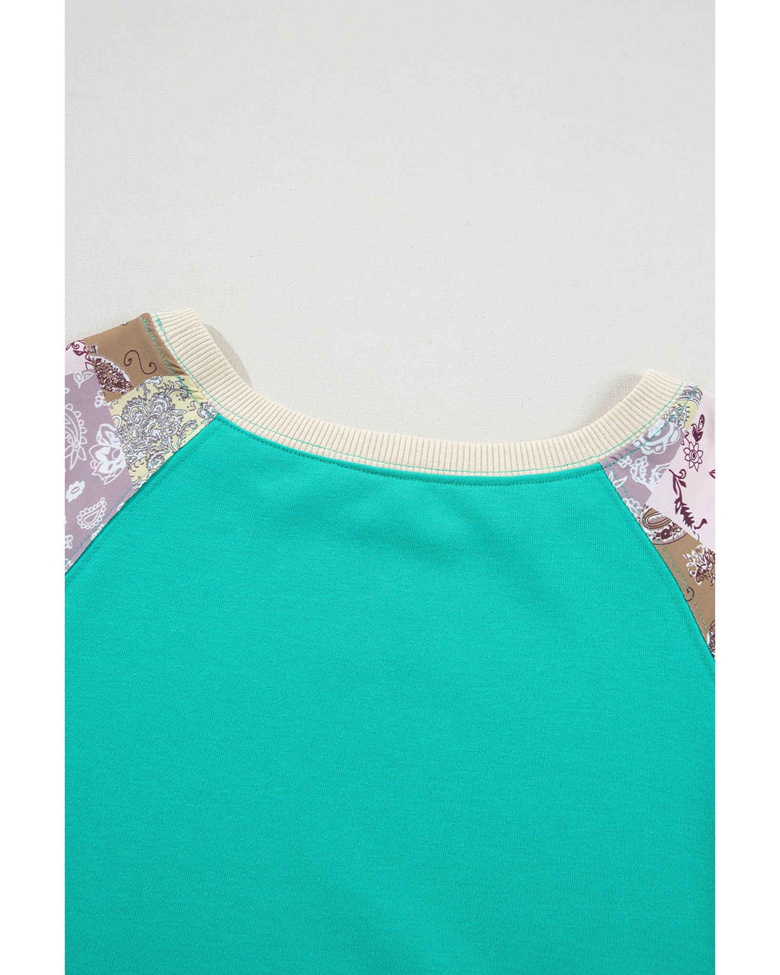 Aruba Blue Plaid Vintage Paisley Patchwork Long Sleeve Raglan Top – XL