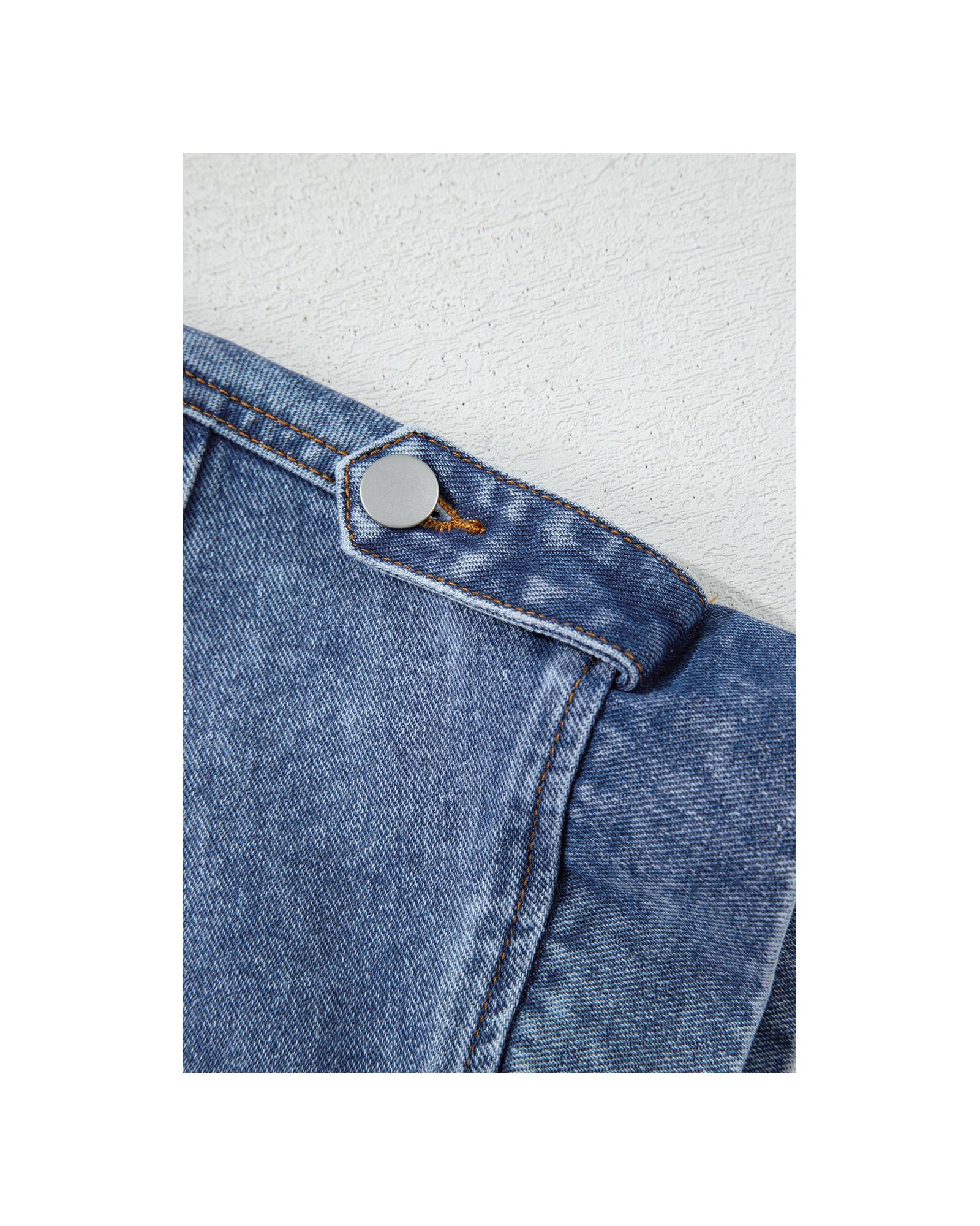 This denim vest features a trendy fitted design with a vintage acid wash finish, offering a modern twist on classic style. The elastic hem provides a comfortable and adjustable fit, making it suitable for various body types. The button-up front adds a timeless element to the overall look, while the durable denim material ensures versatility and longevity.