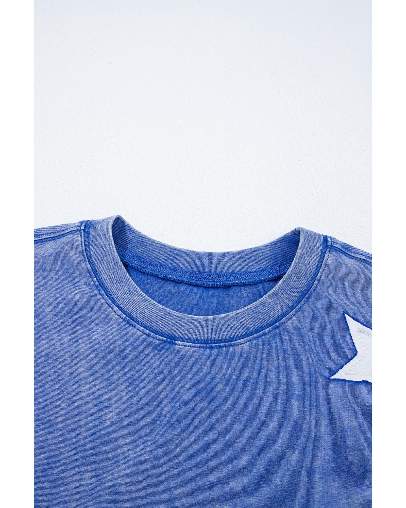 Ashleigh Blue Acid Wash Star Patched Rolled Trim Pants Set – S