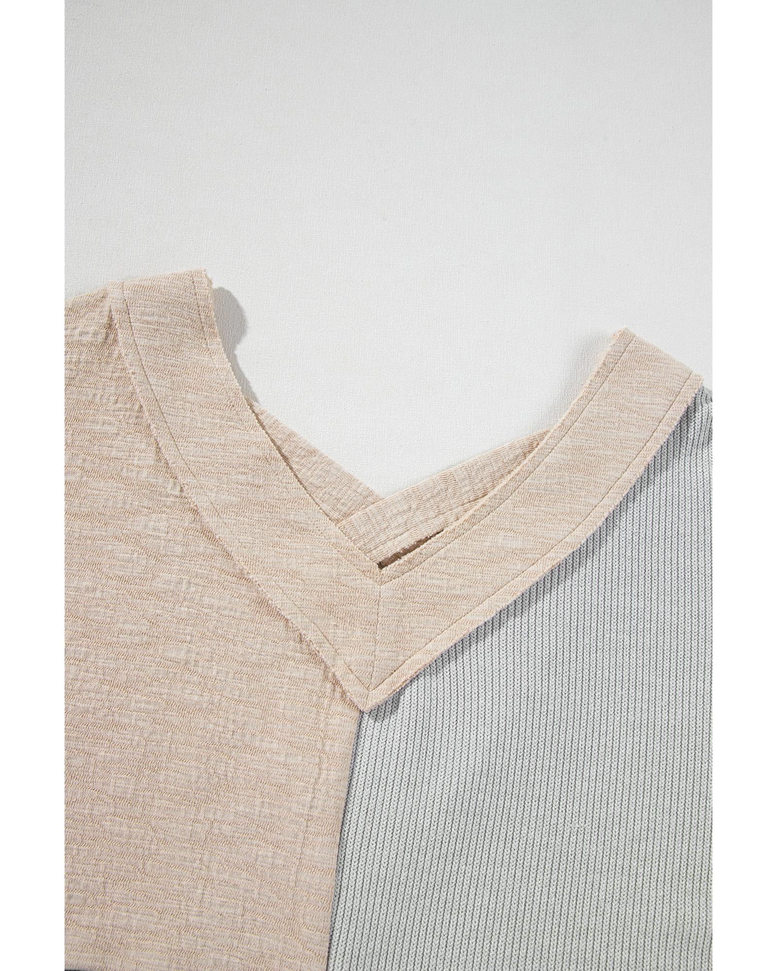 Ashleigh Blue Plus Size Textured Colorblock Patchwork V Neck Top – 1X