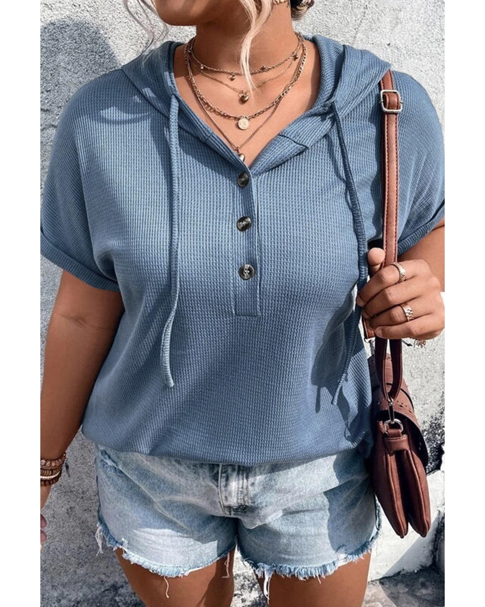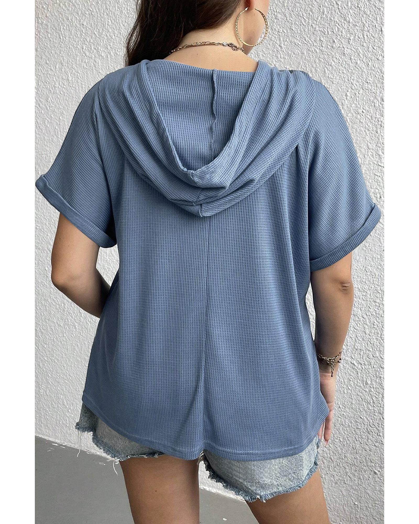 Ashleigh Blue Plus Size Waffle Knit Short Sleeve Drawstring Hoodie – 2X