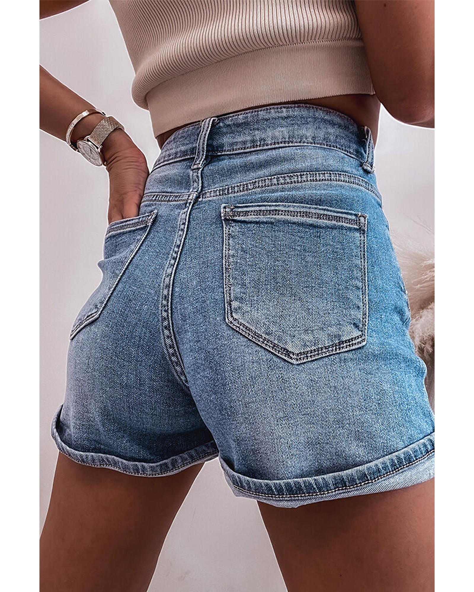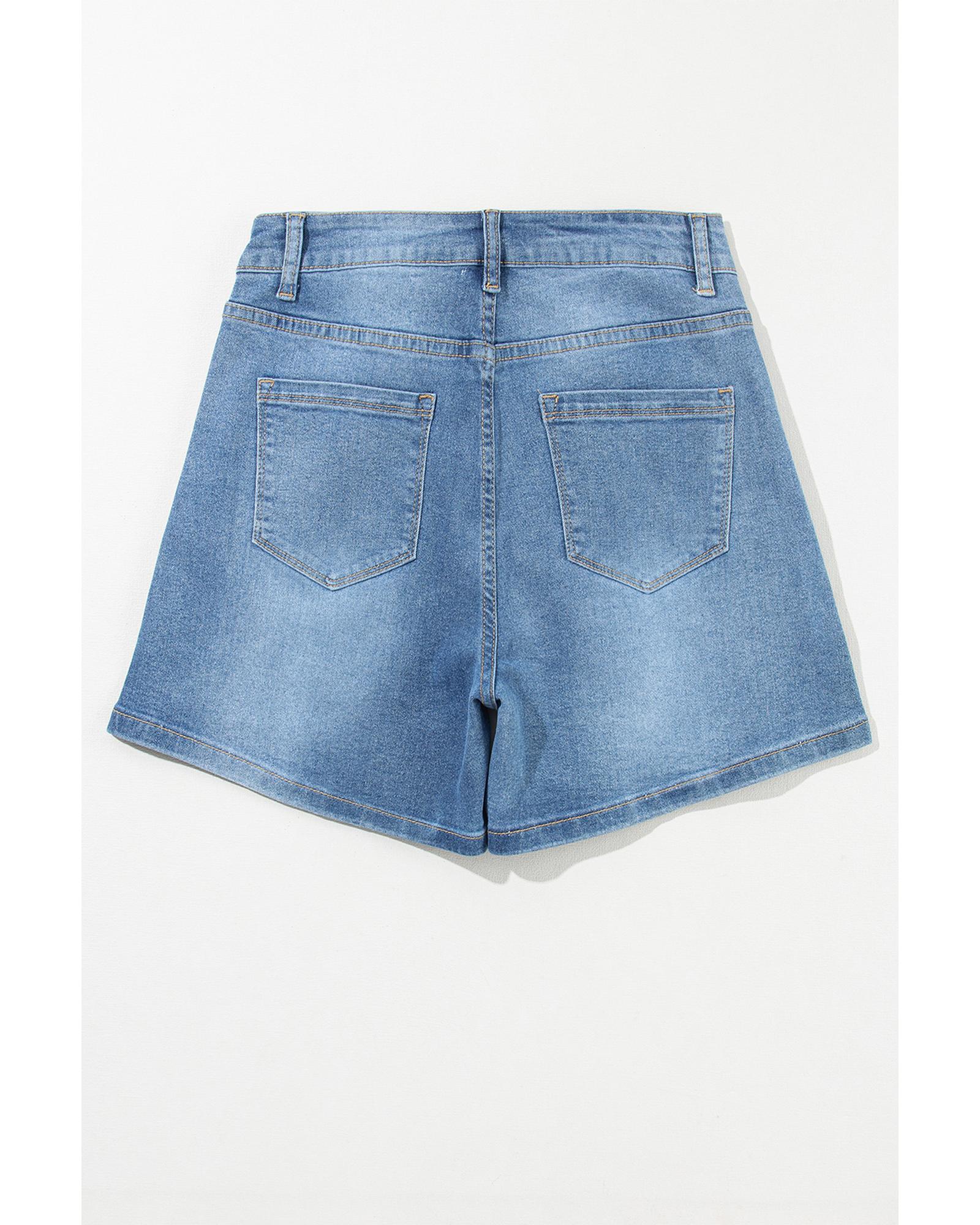These denim shorts feature a trendy fitted design with rhinestone embellishments that add a touch of sparkle and glamour. Crafted from high-quality denim, they offer durability and long-lasting wear. The high-rise cut provides a comfortable and flattering fit, making them versatile for summer wear and suitable for dressing up or down.