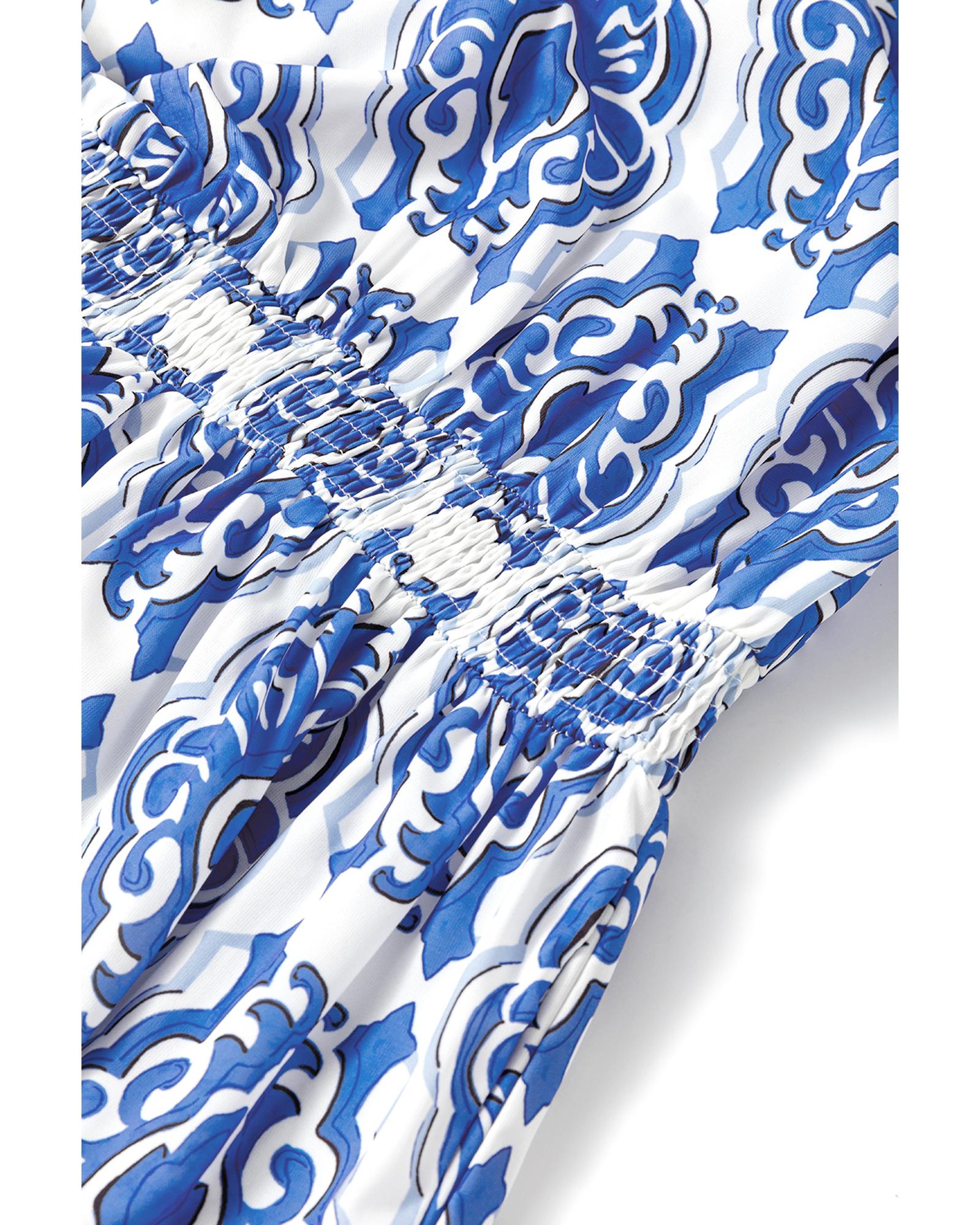 This vintage floral print dress features a stylish and trendy fitted silhouette, designed to provide a fashionable look. It is crafted from soft, lightweight fabric for comfort and ease of wear. The dress includes charming ruffle details and a smocked waist, making it suitable for various occasions.
