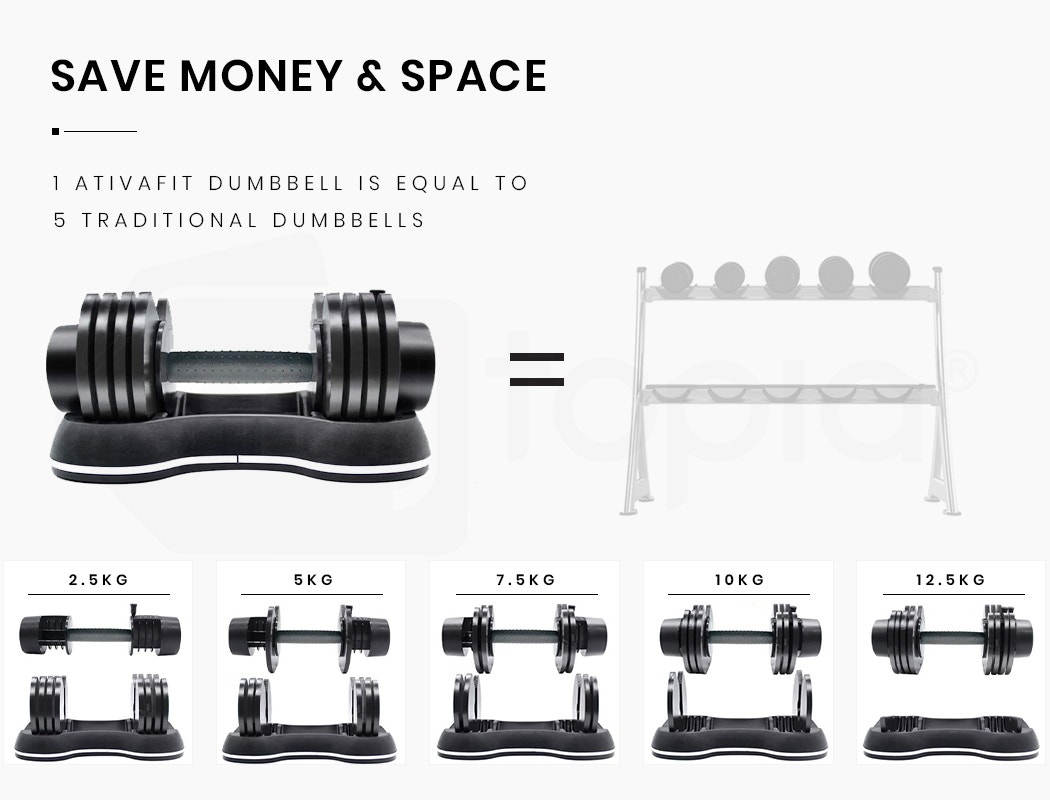 ATIVAFIT 2x Adjustable Dumbbell Set Weights Dumbbells Home Gym Interchangeable