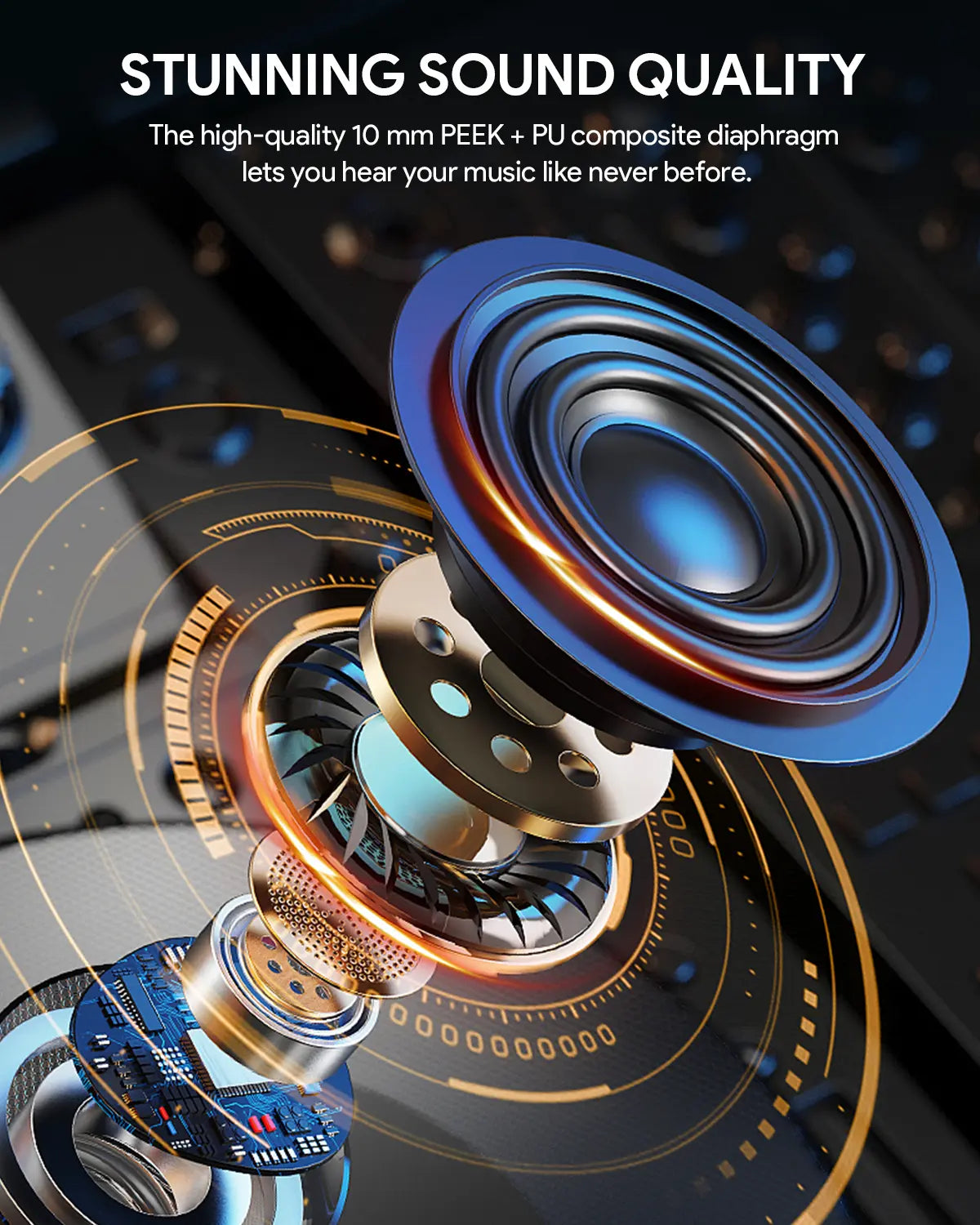 - High-Fidelity Sound with 10mm dynamic drivers delivering rich, detailed audio with deep bass and crisp highs.