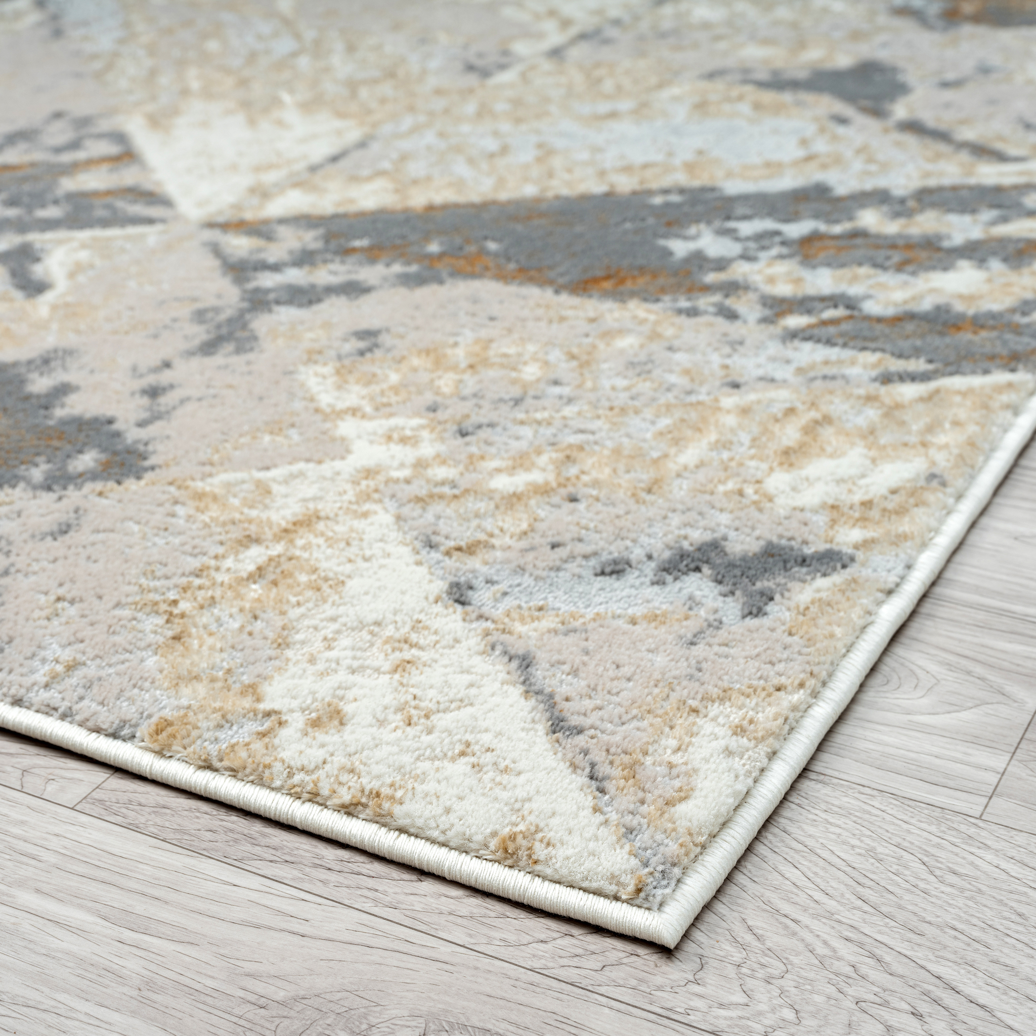 This area rug features a contemporary design with abstract and geometric patterns, adding a modern touch to any space. Made from a durable blend of polyester and polypropylene, it combines style with practicality. The rug’s textured pile offers a sophisticated look while providing shed-resistant and anti-static properties. Its substantial backing enhances durability, making it suitable for various indoor settings.