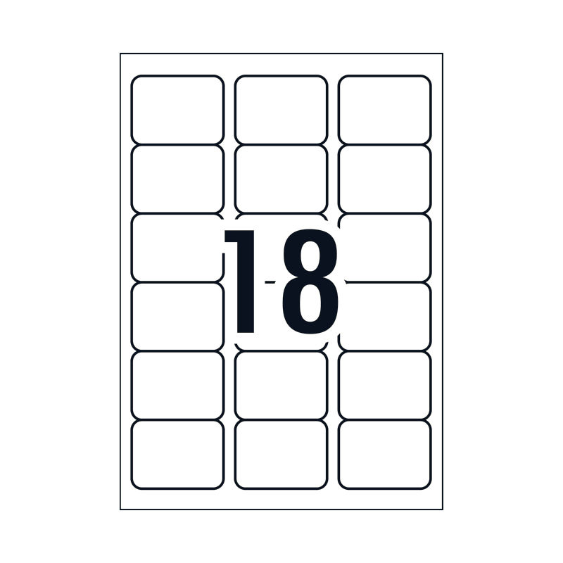 • Label size: 18 labels per sheet, total of 100 sheets