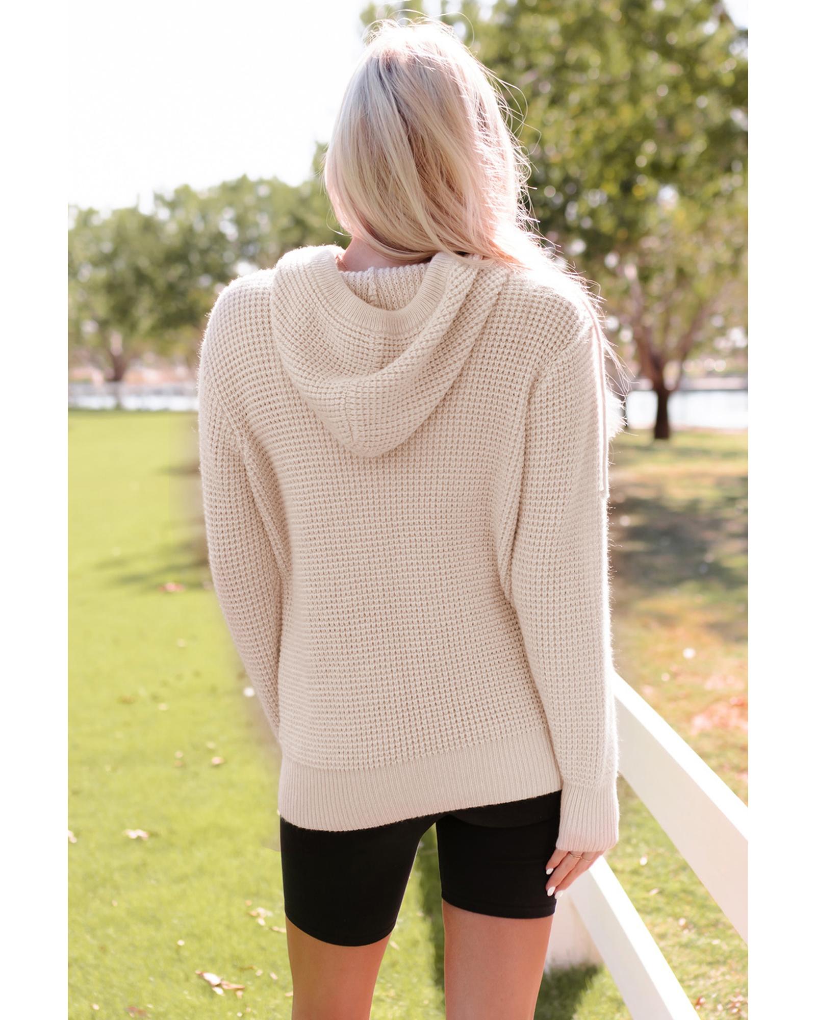 Azura Exchange Apricot Waffle Knit Buttons Hooded Sweater with Pocket – XL