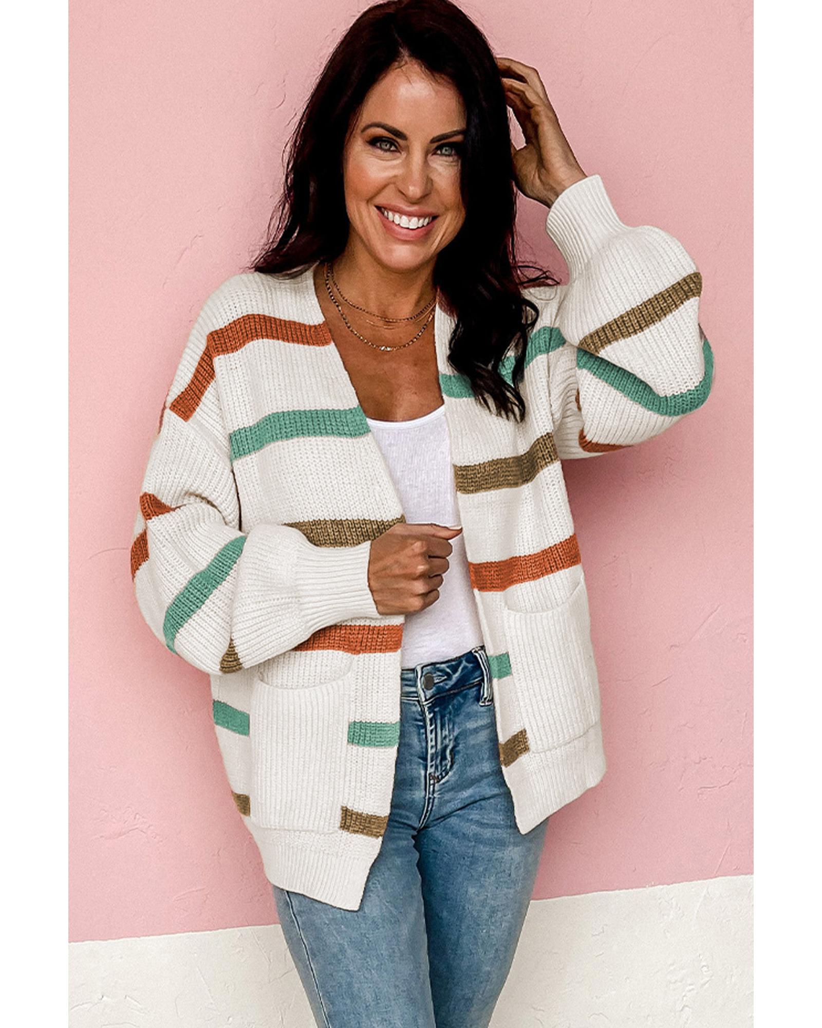 Azura Exchange Beige Drop Shoulder Pocketed Stripe Sweater Cardigan – 2XL