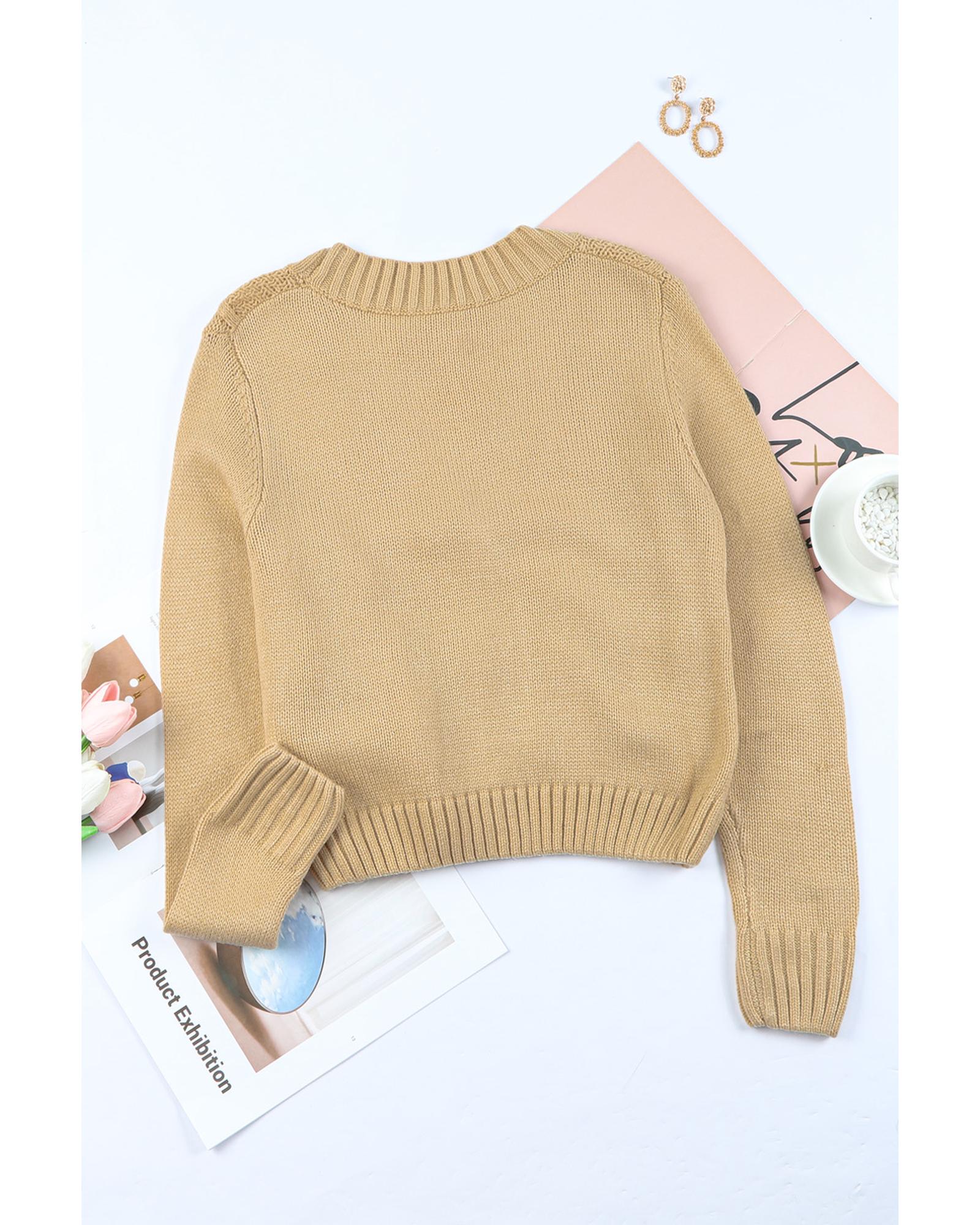 Azura Exchange Beige Front Pockets Buttons Textured Cardigan – XL