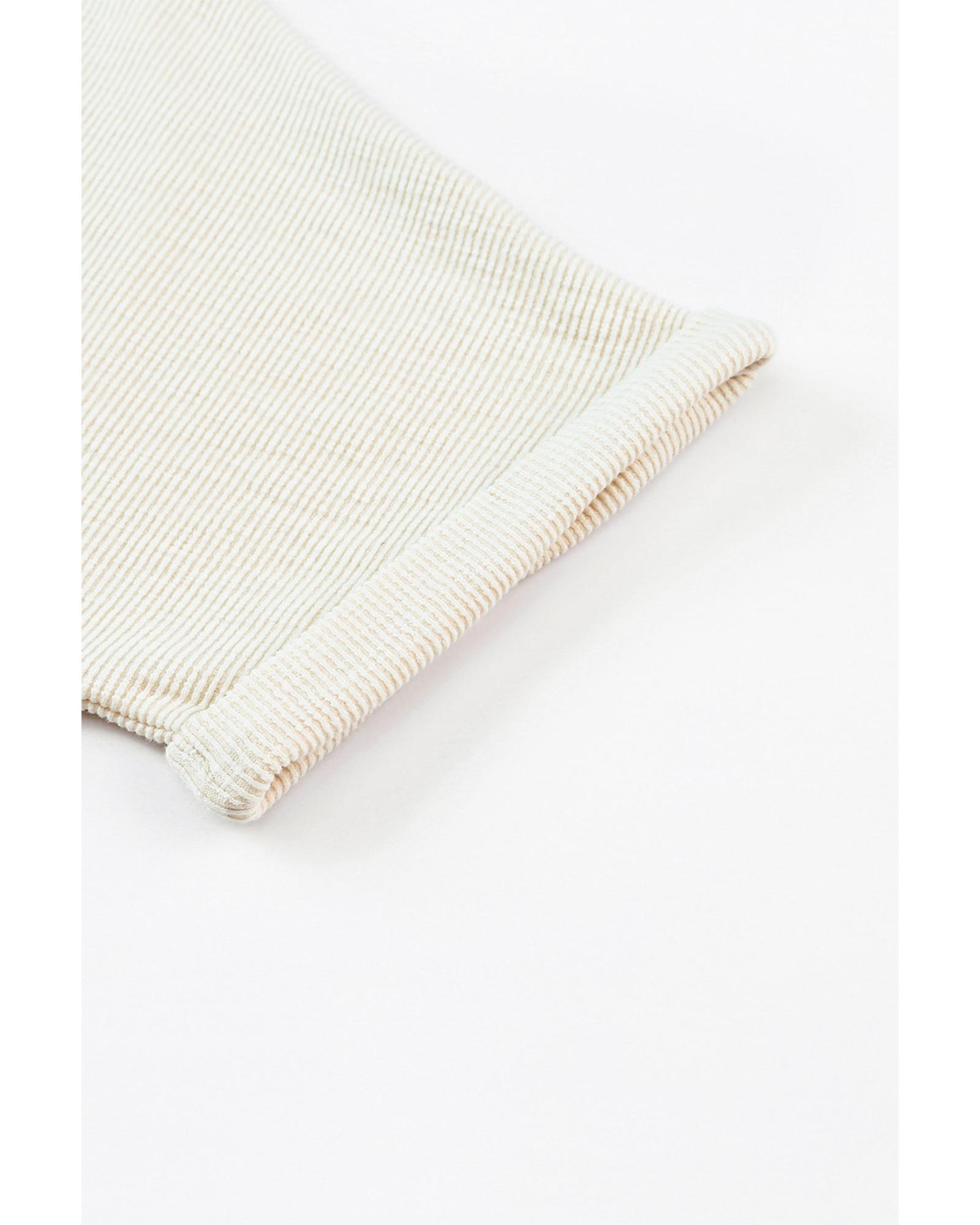 This beige ribbed romper features an elastic waistband designed for a comfortable and secure fit. Crafted from high-quality ribbed fabric, it offers a soft feel against the skin and is suitable for various occasions. Its flattering design makes it a versatile addition to any wardrobe.